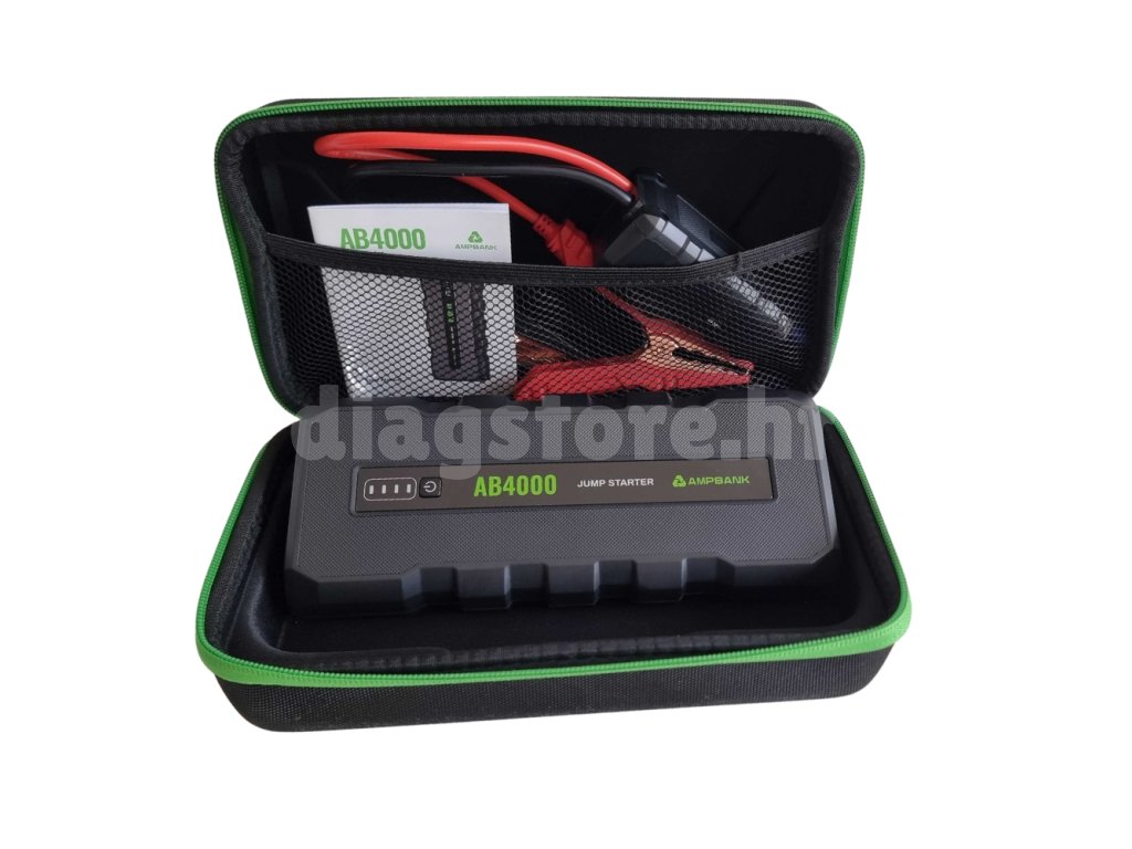 - Snažan startni uređaj na bateriju - Startni uređaj AMPBANK AB4000 ima vršnu struju od 4000A i može pokrenuti gotovo sve 12V motore vozila (do 8L (benzin) ili 6L (dizel)) u sekundama. Savršeno je kompatibilan s 12V automobilima, kamionima, SUV-ovima, motociklima, traktorima, kosilicama itd.