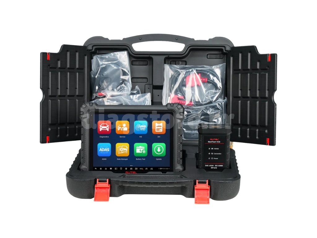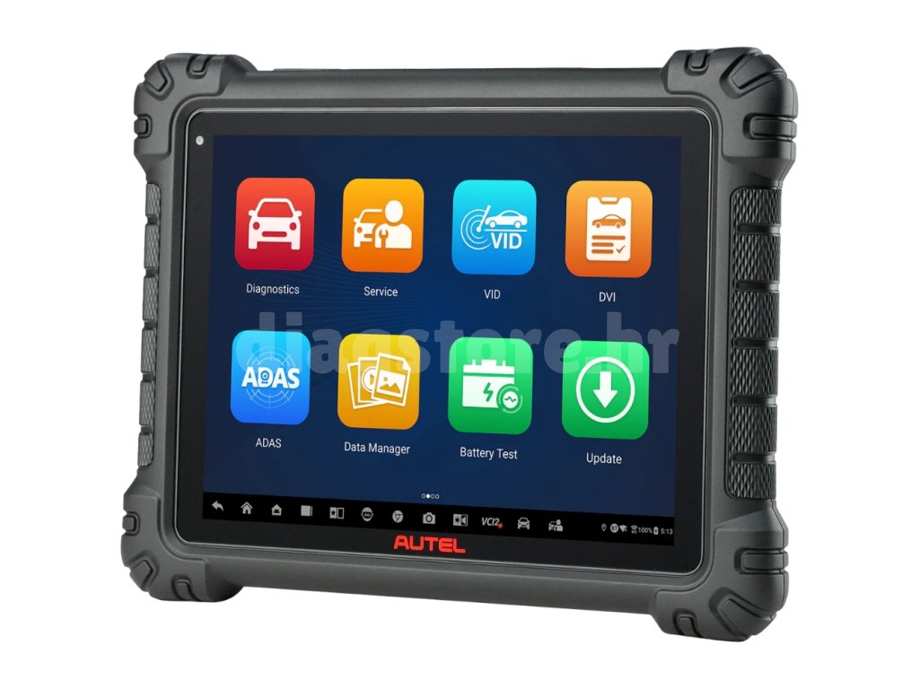 Autel MaxiSys MS909S2 jedan je od najnaprednijih dijagnostičkih sustava u seriji MaxiSys i dizajniran je za profesionalne autoservise koji rade s modernim vozilima i složenim komunikacijskim protokolima. Nudi potpunu dijagnostiku svih upravljačkih jedinica, naprednu analizu podataka, prikaz topologije ECU-a (Topology 3.0) te podršku za online kodiranje i programiranje ECU-a. Sustav se temelji na snažnom tabletu s operativnim sustavom Android 13, osmojezgrenim procesorom, 12 GB RAM-a i 256 GB interne memorije, što osigurava brz odaziv čak i pri radu s velikom količinom live podataka. Uključuje sučelje MaxiFlash VCI2, koje podržava komunikaciju putem USB-a, Wi-Fi-ja i Bluetootha te je u skladu sa standardima SAE J2534, ISO 22900 i RP1210 za PassThru programiranje. Značajna prednost je AI glasovni asistent, koji omogućuje hands-free upravljanje dijagnostikom (pokretanje skeniranja vozila, otvaranje servisnih funkcija, aktivni testovi itd.). MS909S2 također podržava naprednu digitalnu inspekciju vozila (DVI), uključujući rad s fotografijama, mjerenja guma i izradu servisnih izvještaja.