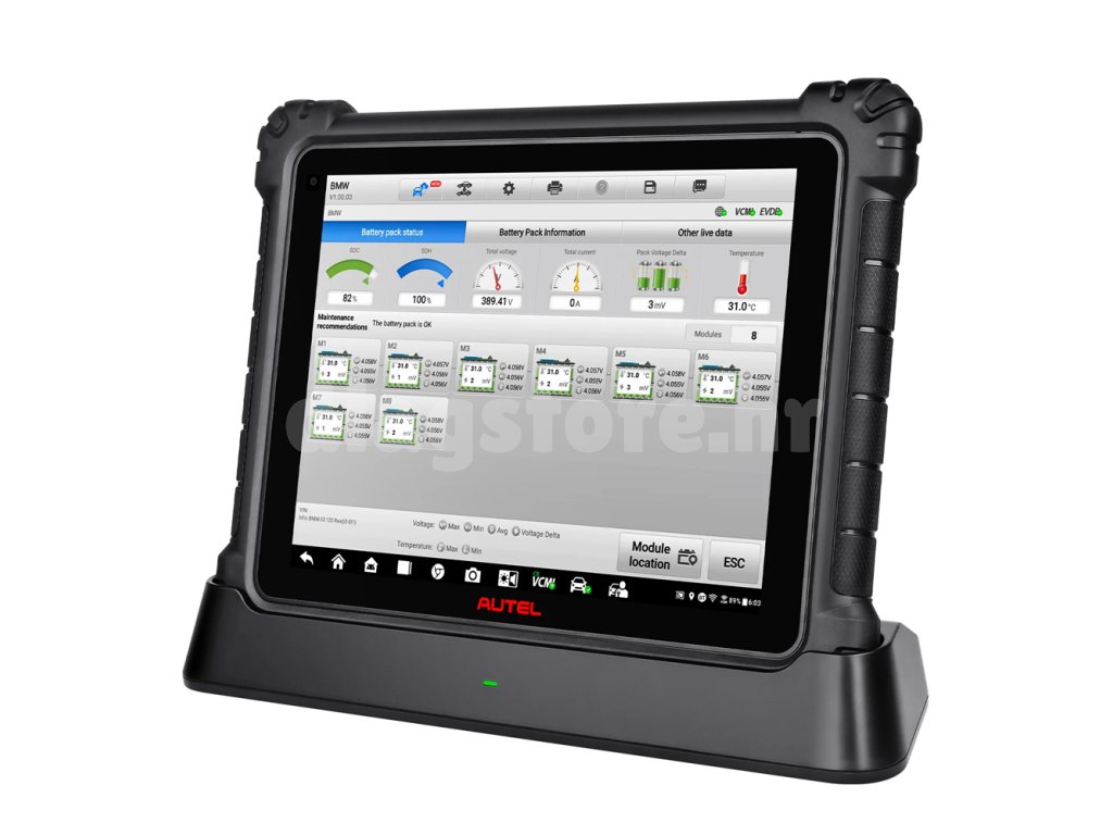 - Autel EV skenira komponente koje čine visokonaponski sustav, očitava i rješava probleme s kodovima grešaka, uključuje postupke zamjene komponenti i servisne funkcije. *Autel EV* može detaljno analizirati stanje trakcijske baterije provjerom parametara *SOC* i *SOH*. Softver pruža informacije o lokaciji baterije te o ispravnom rukovanju i radu baterije.