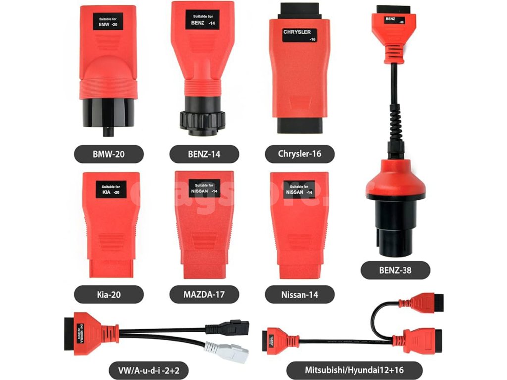 BMW i Mercedes bili su najraniji proizvođači koji su koristili vlastite utičnice, ovdje se to odnosi na automobile do otprilike 2001. godine. Ostali proizvođači obično su prešli na OBD-II konektor krajem 1990-ih. Komplet ne uključuje dijagnostički uređaj, već samo adaptere za spajanje. Kompatibilno na primjer s Autel, Launch, Otofix i drugim dijagnostičkim sustavima.