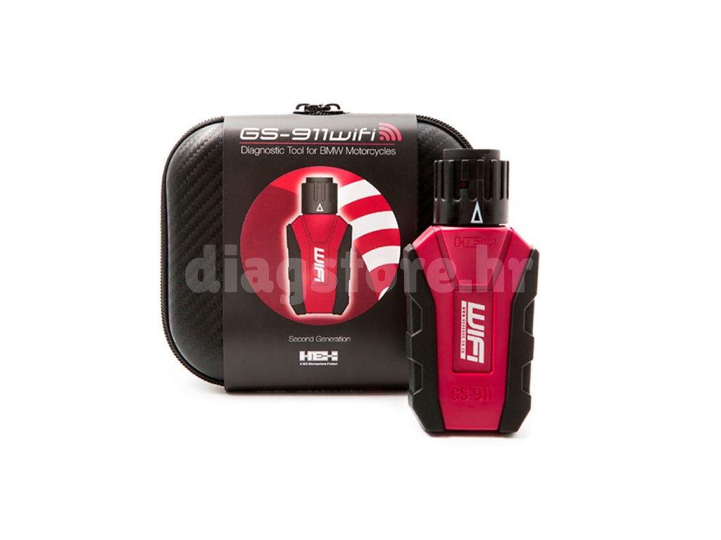 GS-911-wifi je sljedeća generacija popularne BMW-ove dijagnostike za motocikle. Podržava najnoviju K001 platformu, koju koriste K1600GT/GTL, R1200GS LC, R1200GS Adv ALC, R1200RT LC, S1000R, C-evolution i drugi modeli. Kao i kod prethodne generacije, dijagnostičke funkcije su podijeljene u dva dijela - Hitni slučajevi i Servis. Dijagnostika se može spojiti na računalo putem USB ili Wi-Fi veze. A ako ste u pokretu, GS911 se može kontrolirati i putem mobilnog telefona ili tableta.Ovaj model je opremljen 10-pinskim konektorom. Za spajanje motocikala s OBD-II utičnicom, potrebno je kupiti adapter ili odabrati model s OBD-II konektorom.