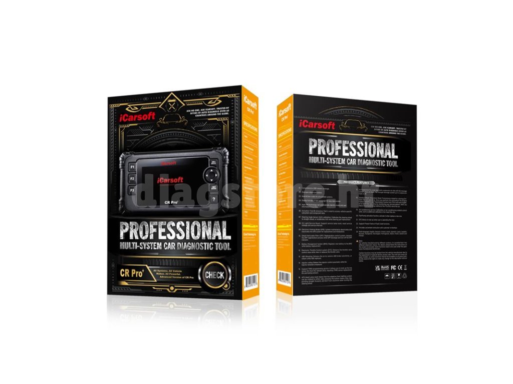 iCarsoft CR PRO+ je dijagnostički skener za povezivanje sa svim markama automobila. Uređaj je opremljen 4,3" TFT zaslonom i jednostavan je za korištenje. Ažuriranja softvera uređaja vrše se putem računala. Uređaj ima širok raspon podržanih jezika. Podržani su automobili proizvedeni od 1996. do 2020. godine. Instrument omogućuje detaljnu dijagnozu svih jedinica, a također nudi veliki broj servisnih funkcija kao što su resetiranje servisnih intervala, regeneracija DPF-a, dijagnostika i otpuštanje električne ručne kočnice, kodiranje injektora, registracija akumulatora i još mnogo toga. Uređaj je spojen na automobil putem OBD-II kabela.