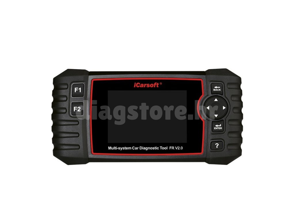iCarsoft FR V2.0 je dijagnostički alat koji omogućuje povezivanje sa svim upravljačkim jedinicama vozila marke Alfa Romeo, Citroen, Dacia, Fiat, Peugeot, Renault. Uređaj je opremljen 4" zaslonom u boji i spreman je za upotrebu. Ažuriranja softvera uređaja su potpuno besplatna i obavljaju se putem računala (USB kabel uključen). Uređaj ima širok raspon podržanih jezika. Podržani su automobili od 1996. do 2016. godine. iCarsoft skener omogućuje detaljnu dijagnozu svih jedinica, a također nudi 6 servisnih funkcija kao što su resetiranje servisnih intervala, regeneracija DPF-a, dijagnostika i otpuštanje električne ručne kočnice, registracija akumulatora i još mnogo toga. Uređaj je spojen na automobil putem OBD-II kabela.