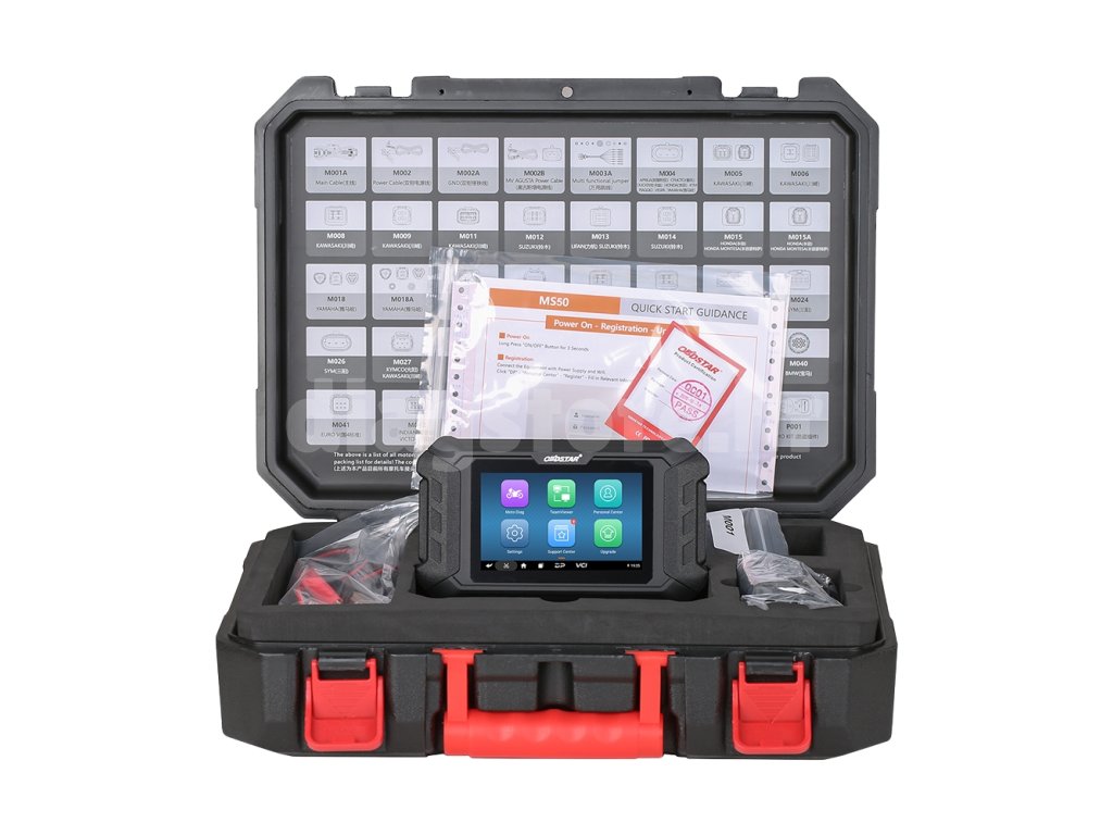 OBDStar MS50 Standard nudi inteligentnu dijagnostiku profesionalne razine, uključujući sveobuhvatne dijagnostičke i servisne funkcije. Instrument će otkriti kvarove, pružiti tehnički bilten, pomoći u praćenju očitanja, lokaciji dijagnostičke utičnice i drugim značajkama kako bi vam pomogao u točnoj i učinkovitoj dijagnostici. Velika prednost je bogatstvo pratećih tehničkih podataka kao što su interaktivni dijagrami strujnih krugova, vodiči za rješavanje problema i još mnogo toga. Uključeni su adapteri za spajanje na odabrane marke motocikala.