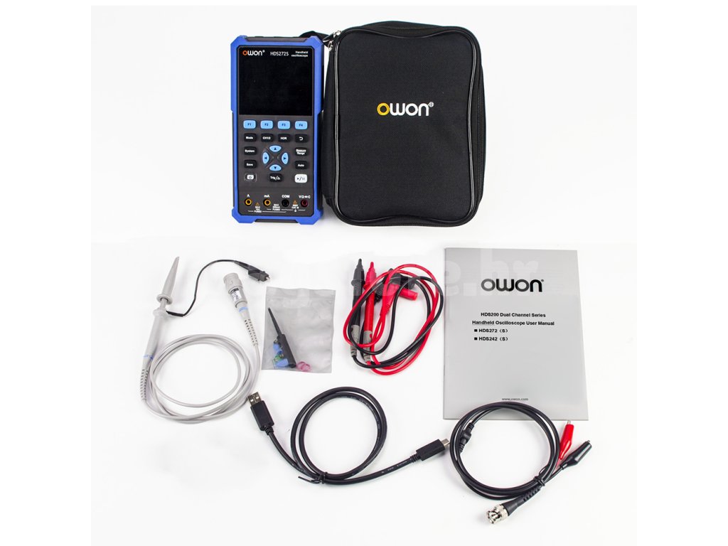 Owon HDS272 je prijenosni dvokanalni osciloskop koji se može koristiti i kao multimetar. Instrument ima zaslon u boji visokog kontrasta pogodan za vanjsku upotrebu i napaja se s dvije 18650 baterije koje traju do 6 sati neprekidnog rada. Osciloskop možete spojiti na računalo putem USB-C priključka i koristiti ga s Owon softverom. Uređajem se može upravljati pomoću SCPI-ja ili puniti pomoću powerbanka. Serija HDS200XXX ima veći zaslon i veću internu memoriju.