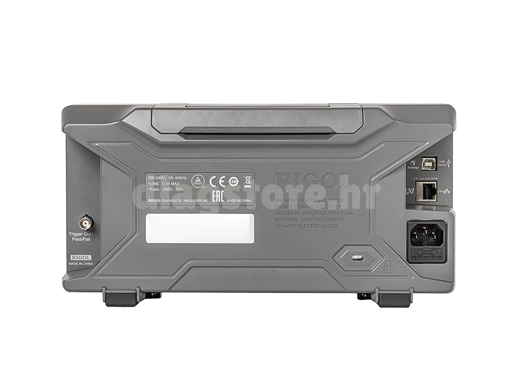 Rigol DS1054Z je 4-kanalni osciloskop s **frekvencijom uzorkovanja od 1GS/s** i memorijom od 12 milijuna točaka. S **frekvencijom osvježavanja od **30000 wfm/s**, moguće je brzo analizirati signal i pronaći sve probleme koji mogu biti prisutni u signalu. Propusnost modela podijeljena je s brojem aktivnih kanala, **250 MS/s** (4 aktivna kanala), 500 MS/s (2 aktivna kanala), **1** GS/s (1** **aktivni kanal)**. Memorija ovog uređaja je **24 Mpts** podijeljena između četiri kanala. Uređaj je opremljen USB sučeljem za prijenos podataka na računalo ili memorijsku karticu.