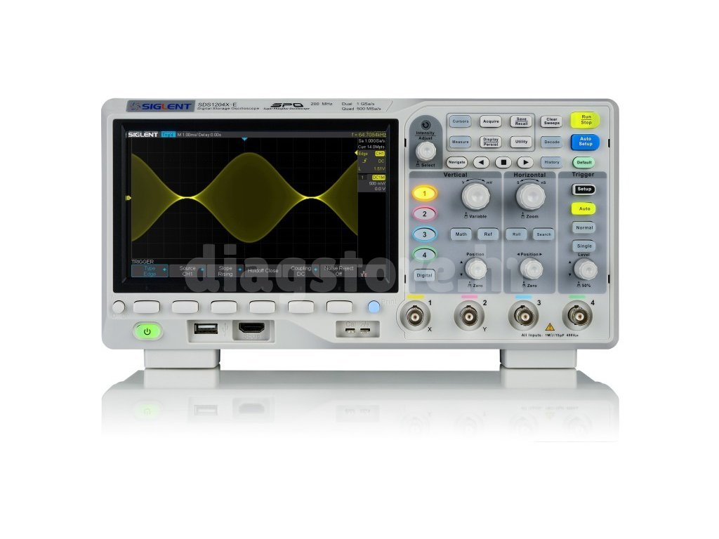 SDS1204X-E je model s četiri kanala u seriji "SDS1200X-E" koji može istovremeno mjeriti na do dva kanala. Sondaima dva ADC-a, tako da može istovremeno mjeriti na dva kanala bez gubitka brzine uzorkovanja. Ako su svi kanali aktivni, sonda i dalje ima 500MS/s po kanalu. Ovaj model ima propusnost do 200 MHz i 14 Mpts na četiri aktivna kanala.